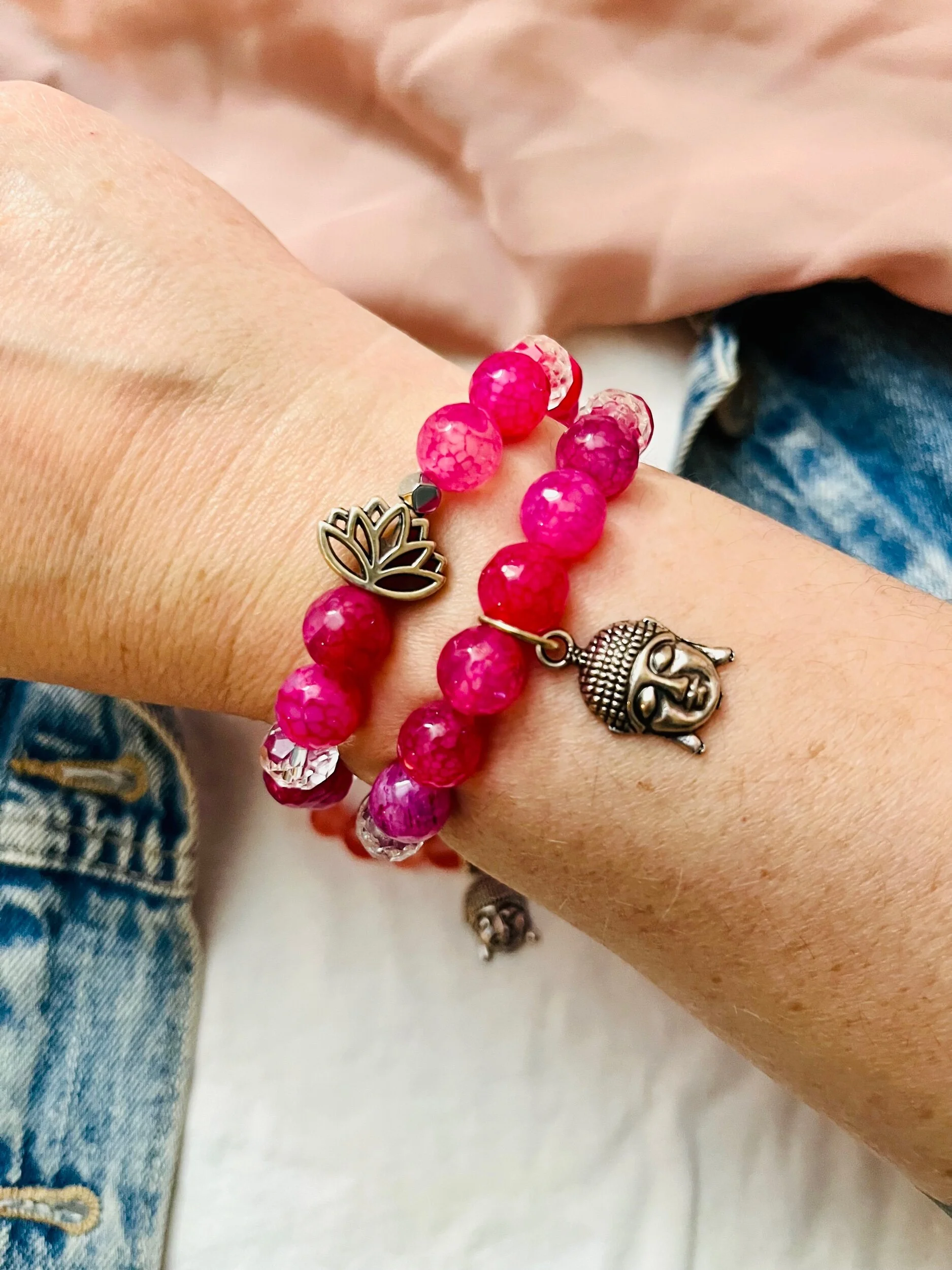 Chunks of red coral with perfect imperfections come together with a bright blue agate centerpiece.